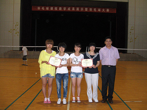为加强内涵建设、深化羽毛球课程改革、弘扬体育精神、深化院系交流,5月15日至17日,由基础部羽毛球课程组主办,学生处协办,羽毛球协会承办的羽毛球院级重点课程教学成果展示暨“挑战杯”羽毛球比赛在体育馆顺利进行,基础部主任王莉、学生处处长刘东和课程组负责人曹桂霞分别为获奖的运动员颁发了证书。