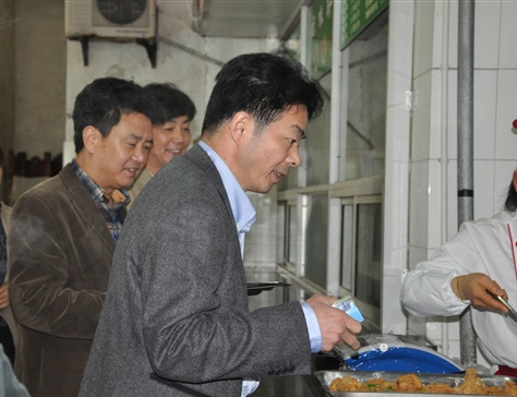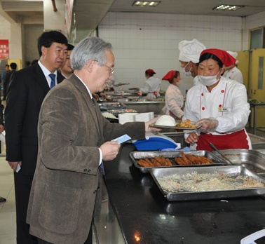 4月26日12时许,评估专家组专家在结束了一上午的工作之后,来到学院餐厅,与师生员工共进午餐。