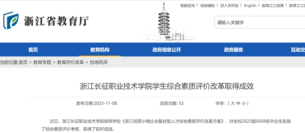 11月8日,浙江省教育厅网站以《日韩欧美福利视频_黑人巨大人精品欧美三区_欧美成人另类人妖_欧美在线精品一区二区三区_欧美一区二区三区性视频_日韩精品欧美视频_性欧美极品xxxx欧美一区二区学生综合素质评价改革取得成效》为题,报道了我校持续深化教育评价改革,加快推动教育评价改革的标准化、体系化、规范化、数字化发展,不断提升学校治理能力和人才培养质量的经验做法。这是2022年9月5日我校《浙江民营小微企业复合型人才综合素质评价改革》成功入选浙江省深化新时代教育评价改革试点项目以来,教育厅网站第二次报道我校试点工作取得的成效。