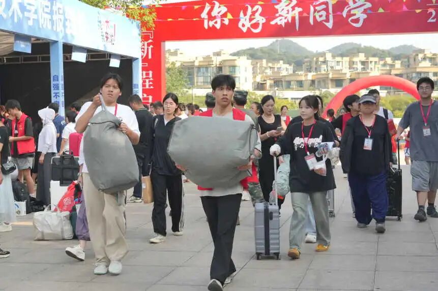 烈日下的红马甲和迷彩服,是校园里最美的风景。指引、答疑、搬运……汗水划过微笑的脸庞,他们用行动书写欢迎,用热情温暖初遇。致敬每一位忙碌的志愿者,你们辛苦了!