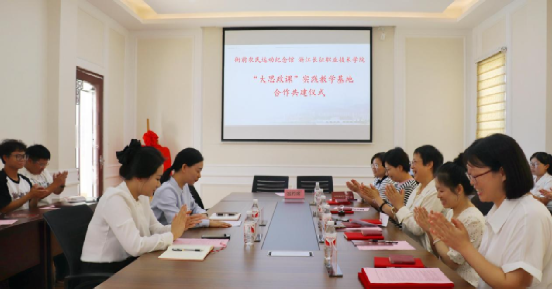 随后,王华表示长期以来,学校不断探索思政课实践教学的方式方法,致力于打造学生真心喜爱,入脑入心的思政课。与衙前农民运动纪念馆共建“大思政课”实践教学基地,是学校深入学习贯彻习近平总书记对学校思政课建设作出的重要指示精神和国家、省、市新时代学校思政课建设推进会精神的重要举措。她强调,一直以来,马克思主义学院不断深化教学改革,优化实践教学,推动思政课实践教学与学生社会实践活动、社会服务活动相结合,提升思政课教学的亲和力。之前,学院已在抗日战争胜利浙江受降馆等建立了实践教学基地,并在多次合作中积累了宝贵的实践教学经验。